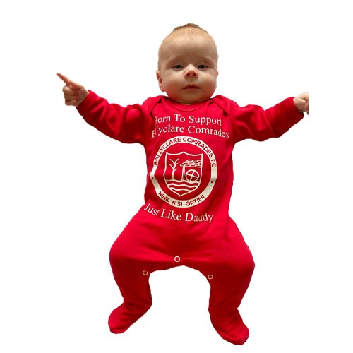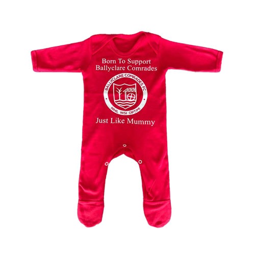 ‘Born to support Ballyclare Comrades just like ……’ babygrow made from 100% cotton